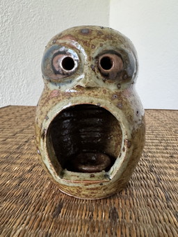 Guy Baudat ceramic owl candle jar
