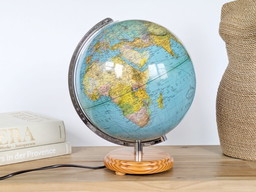 1980s Columbus Duplex Illuminated Globe: Political & Physical Map, Pine Wood Base, European Plug1980s Columbus Duplex Illuminated Globe: Political & Physical Map, Pine Wood Base, European Plug