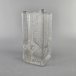 Vintage Glass Vase Made By Nybro Glasbruk, Sweden. Rectangular Vase. Brutalist.