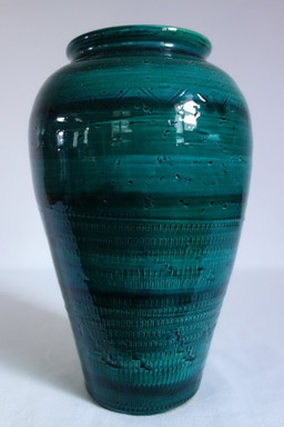 Vintage green ceramic vase in the style of Aldo Londi Bitossi