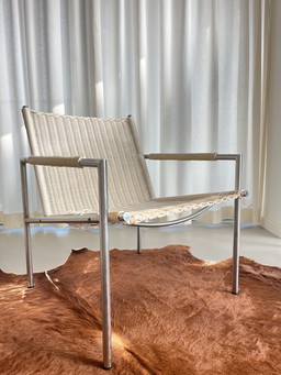 Although his pieces may look factory-made, they are in fact all handcrafted. A fastidious and meticulous designer, Visser's vintage furniture is of the highest quality. The SZ63 lounge chair (1960) is a perfect example of his taste for clean, simple lines. Martin Visser was born in the Netherlands in 1922. He studied civil engineering at the Technical College. He then worked as an architect, before designing his first piece of furniture for a friend. A gifted and passionate young man, he joined the furniture design department of a famous Dutch store: De Bijenkorf. In 1954, Visser began his collaboration with the publisher Spectrum, developing his taste for functional design. In the 70s and 80s, he worked as a curator for the Boysmans-va Beuning Museum in Rotterdam. He developed a new, more baroque style. His wife, Joke van der Heijden, also played a major role in his inspirations: she was responsible for the choice of colors.