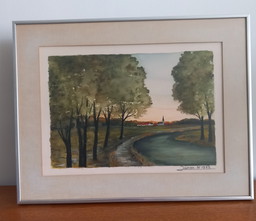 Impresión artística moderna de mediados de siglo de A. Guardieli - Firmada y enmarcada en aluminio