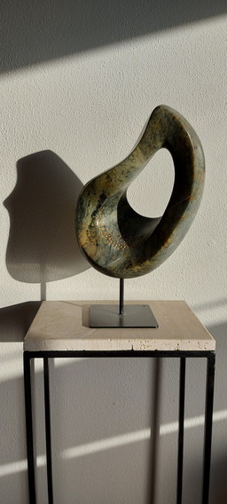 Escultura de bronce «Familia en un gran disco». (Precio reducido)
