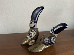 Par de pájaros de cristal de Murano opalino rosa de los años 60