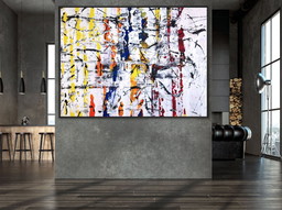 Gente en camino a..., cuadro abstracto 3D realizado en acrílico y tinta.