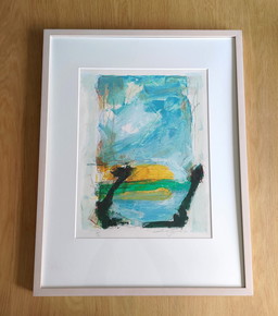 Serigrafía vintage de una vista abstracta de un entorno industrial, del artista Roel Jonges, Países Bajos. Marco incluido. Firma