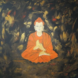 Harold Scheffer " Red Reggae " 70x70 cm.