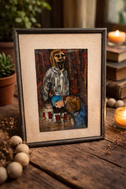 Alberto Ricardo - Rostro India - Lienzo de artista bajo vidrio