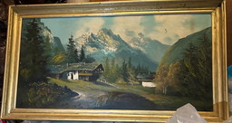 Pintura al óleo – Paisaje alpino con iglesia Firmado M. Knerr 56 × 46 cm Con marco