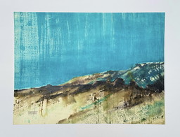 Acuarela sobre seda pintada a mano y firmada "Soleil Couchant" de Odille Penelle