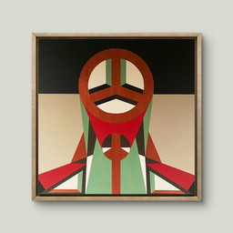 Cuadro abstracto sobre lienzo, en marco de madera negro.