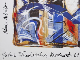 Firmado; Guillaume Corneille Litografía Bandada de pájaros al anochecer - 1960 - Prueba de impresión enmarcada