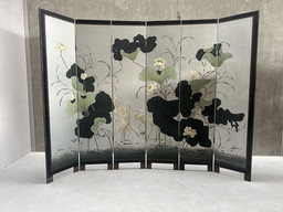 Biombo de 6 paneles de madera lacada y tallada - Decoraciones de doble cara - China - Circa 1950