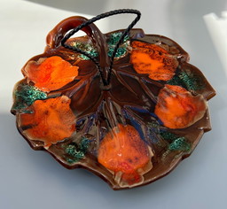 Cuenco francés vintage de cerámica Vallauris con forma de hoja (frutero)