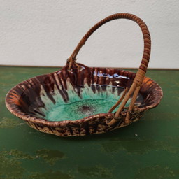 Maceta antigua Art Nouveau de mayólica francesa ca. 1900
