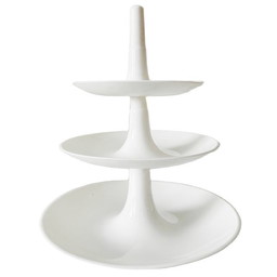Gran centro de mesa blanco con bandejas apiladas de plástico blanco, Italia, década de 1970