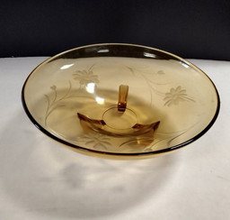 Cuenco vintage de latón con grabado oriental de pavo real y flores con motivos bohemios, década de 1930