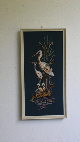 Obra de arte vintage en bordado con marco dorado ornamentado