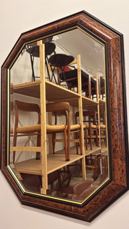 Espejo de pared moderno de mediados de siglo, años 50 y 60, con marco de metal y latón.