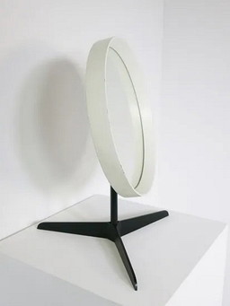 Espejo de tocador de mesa Art Déco de metal niquelado y vidrio opalino de La Maison Desny, década de 1930