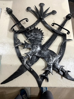 Espejo de sol de hierro artesanal con motivo de palmera - creación única