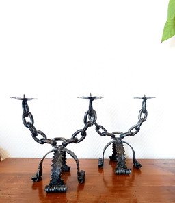Gran candelabro brutalista de hierro forjado negro, 1950-1960