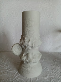 Raro jarrón de piso Rosenthal Werner Schreib Brutalist Relief Bisque Porcelana 58cm