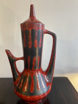 Jarrón de cerámica rojo y negro de Scheurich Alemania, modelo 279-38