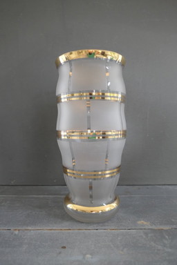 Jarrón art déco de vidrio prensado esmerilado con decoración floral, probablemente años 40, Francia