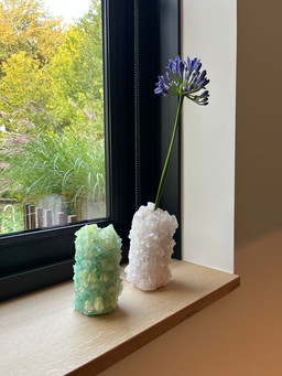 Jarrón de vidrio hecho a mano con diseño de rejilla: objeto de arte