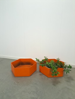 Tres macetas cilíndricas de cobre, diseño vintage holandés