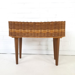 Joyero vintage tejido a mano con tapa tallada en madera.