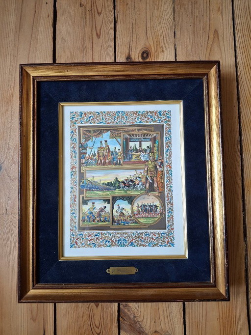 Cuadro en miniatura en marco de nogal, finales del siglo XIX