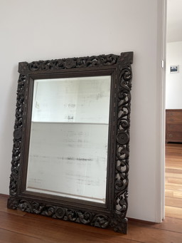 Espejo de pared antiguo en nogal, época imperial, principios del siglo XIX
