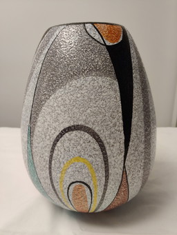 Jarrón de cerámica Steuler de mediados de siglo, años 50, esmaltado con goteo, patrón colorido