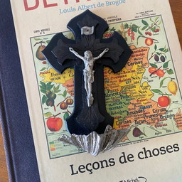 Crucifijo vintage de madera ennegrecida, independiente, cruz de madera negra con figura de Cristo de metal