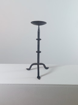 Gran candelabro de hierro forjado con diseño abstracto y tres portavelas.