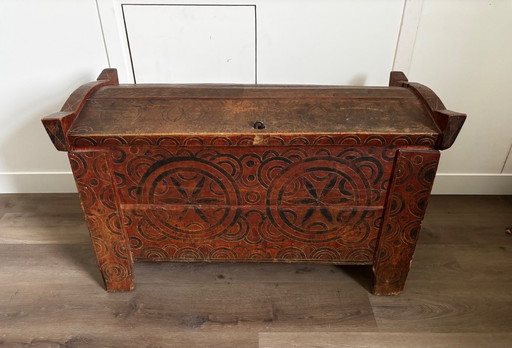Sirena de niebla antigua de barco, operada manualmente, en caja de resonancia de madera (en funcionamiento, ca. 1900)