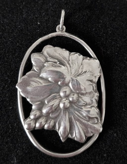 Broche de plata Art Nouveau/Art Déco de Bernhard Hertz con piedra de ágata roja. Copenhague, Dinamarca, 1910.