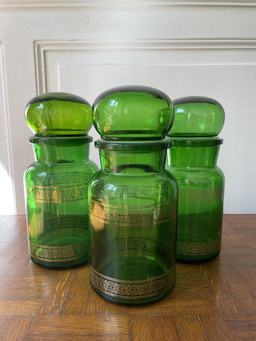 Set de perfume y caja con tapa de cristal de uranio Art Déco para artículos de tocador, estilo antiguo y elegante