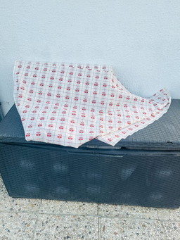 Conjunto Art Déco: botella de vidrio rosa y tarro con tapa.