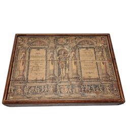 Biombo de mesa chino con incrustaciones de nácar en paneles de piedra antigua.