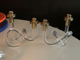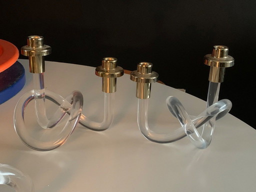 Juego de candelabros vintage de latón y lucita, años 70