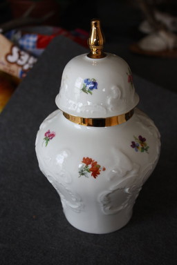 Decorativo AK Kaiser Bisque Porcelana Tapa-Caja Decoración Geométrica Vintage 60s MCM