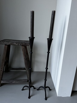 Candelero de hierro fundido macizo patinado, mediados de los años 60
