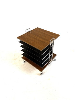 Aksel Kjersgaard revistero estante periódico vintage mediados de siglo moderno diseño danés teca doble almacenamiento