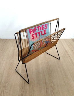 Revistero vintage de ratán y metal