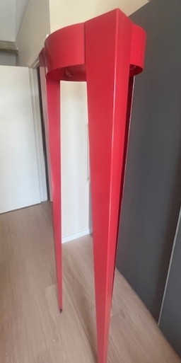 Revistero de hierro forjado con cuero rojo oscuro, vintage