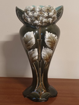 Jarrón de cerámica de la década de 1960 con decoración floral en relieve, verde, amarillo y negro, modelo 76 40 WGP