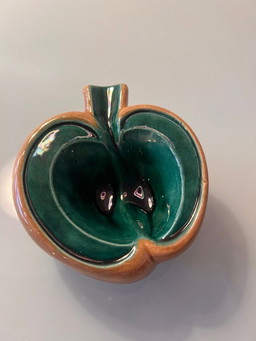 Cenicero de cristal italiano / Vide Poche turquesa verde, década de 1950, mediados de siglo, soplado a boca
